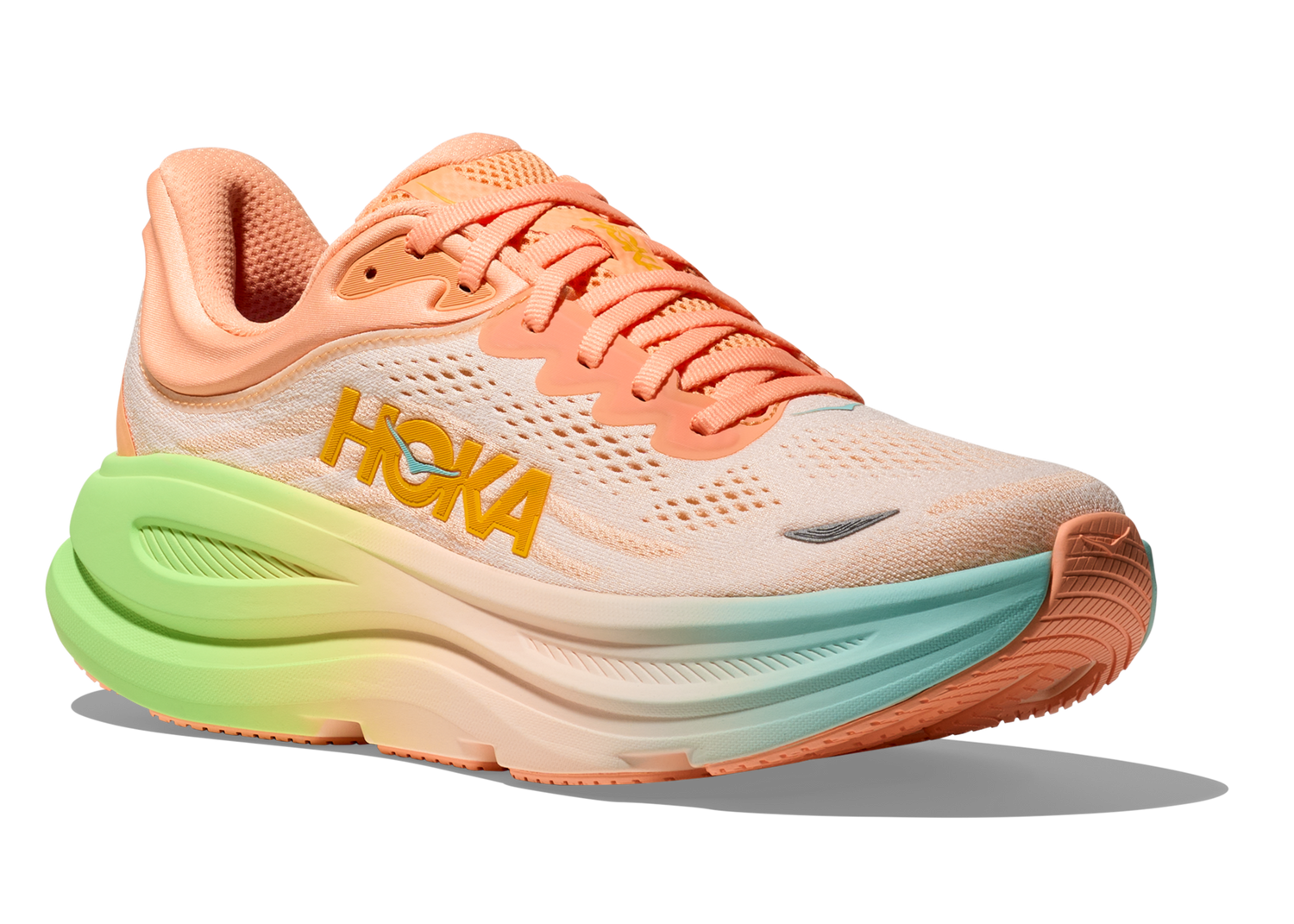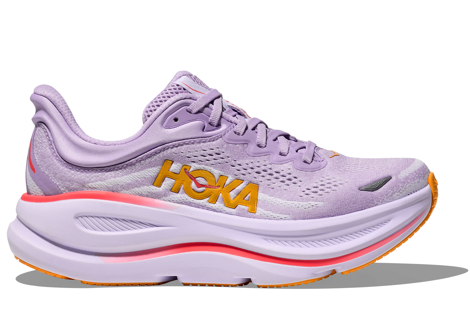 One of the hardest working shoes in the HOKA lineup, the women's Bondi 9 delivers peak plushness for everyday miles. Overhauled from top to bottom, HOKA has increased the stack height and added a new premium foam midsole to deliver that soft, resilient ride that’s become synonymous with the Bondi. Elevated with a 3D molded collar and structured knit upper with zonal breathability, this ultra-cushioned favorite has been finished with Durabrasion rubber to reinforce high wear zones.