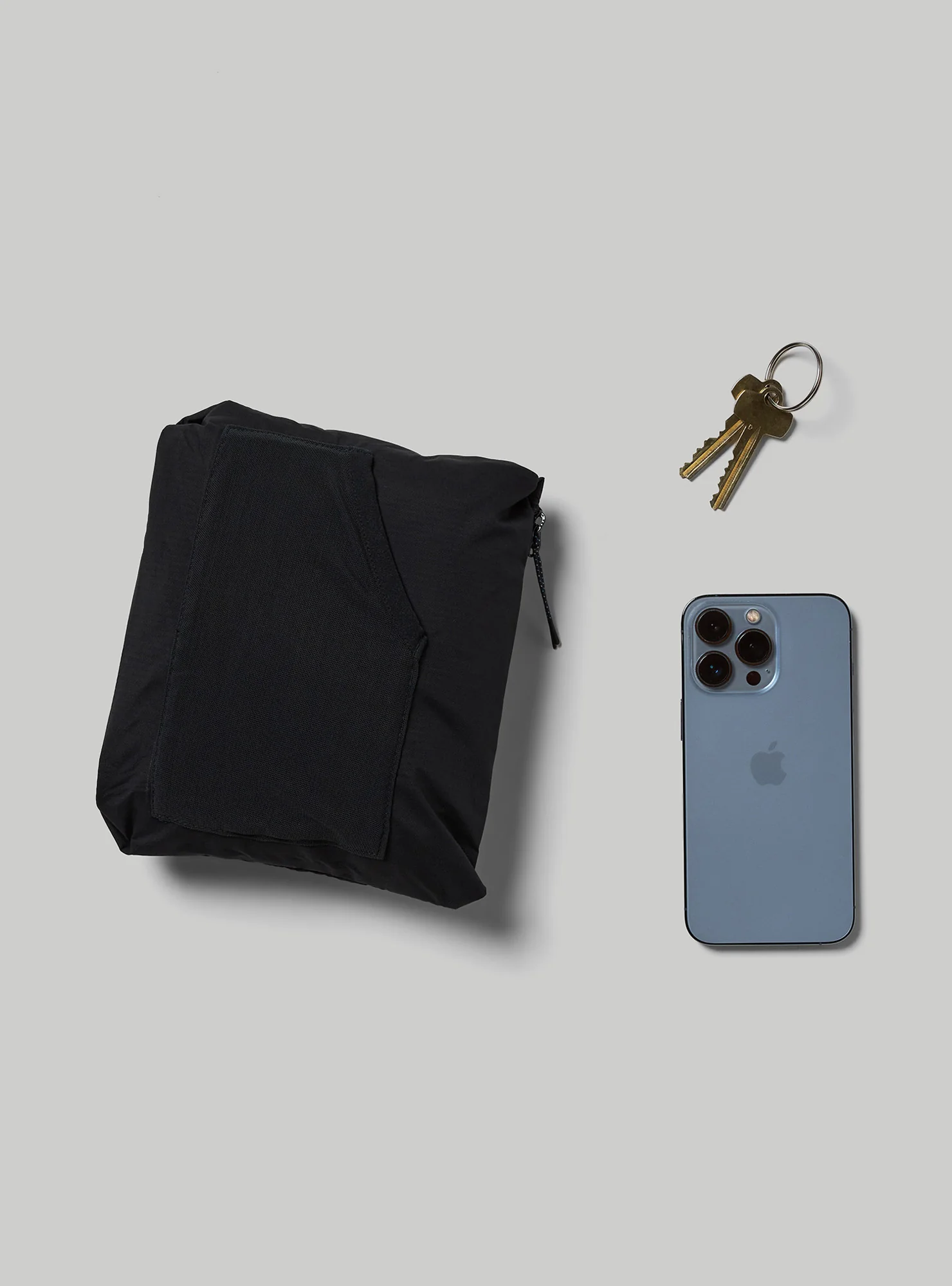 Two zippered hand pockets with thin nylon pulls for easy open/close plus an inset power mesh sleeve in the left pocket to secure a phone and minimize bounce.